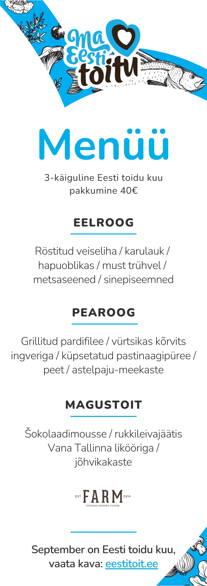 Tallinna vanalinnas asuv ja kaasaegset Eesti kööki pakkuv restoran FARM väärtustab puhast toorainet ning menüüs peegelduvad Eesti köögi pikad traditsioonid koos gastronoomia trendidega.